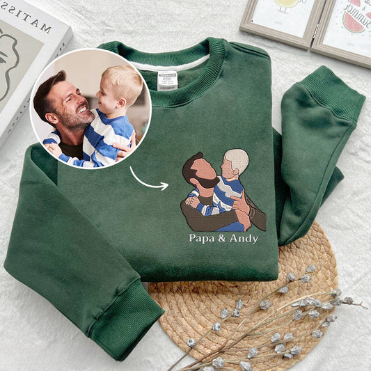 Personalized Dad Sweatshirt With Picture, Custom Embroidered Portrait from Photo Hoodie