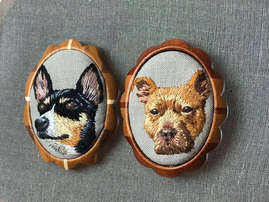 Made to order-Custom Hand embroidered Pet Portrait on hardwood brooch or necklace-Dog/Cat Portrait-gifts for pet lovers-Mother's day gift