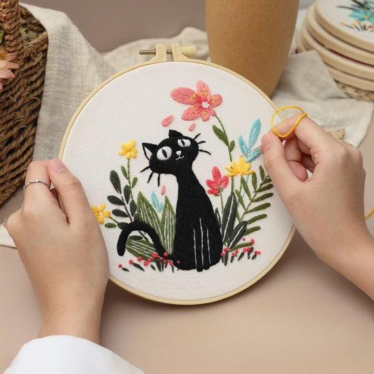 Embroidery DIY Kit Embroidery Kit For Beginner - Complete Creative Handcraft Gift for Holidays & Celebrations Cat embroidered