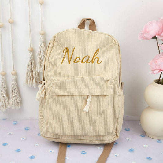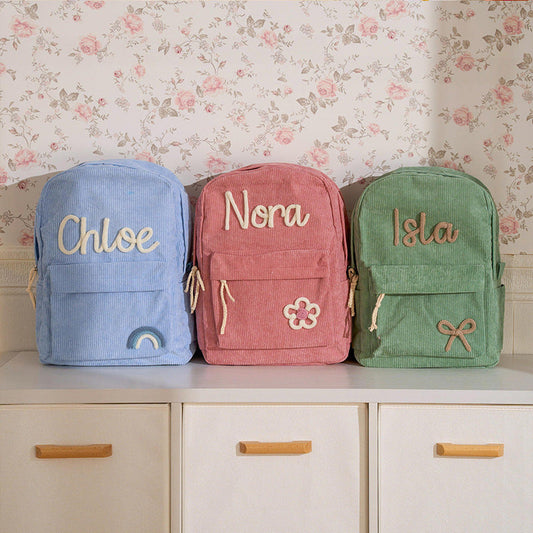 High-quality school backpack made of corduroy fabric – with embroidered name field