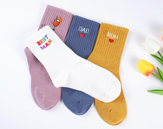 Custom Vintage socks ,Embroidered Socks. Unisex Cotton Socks With Personalized Text Logo,Mom Dad Socks, Party Favors Gift, Family Gift.