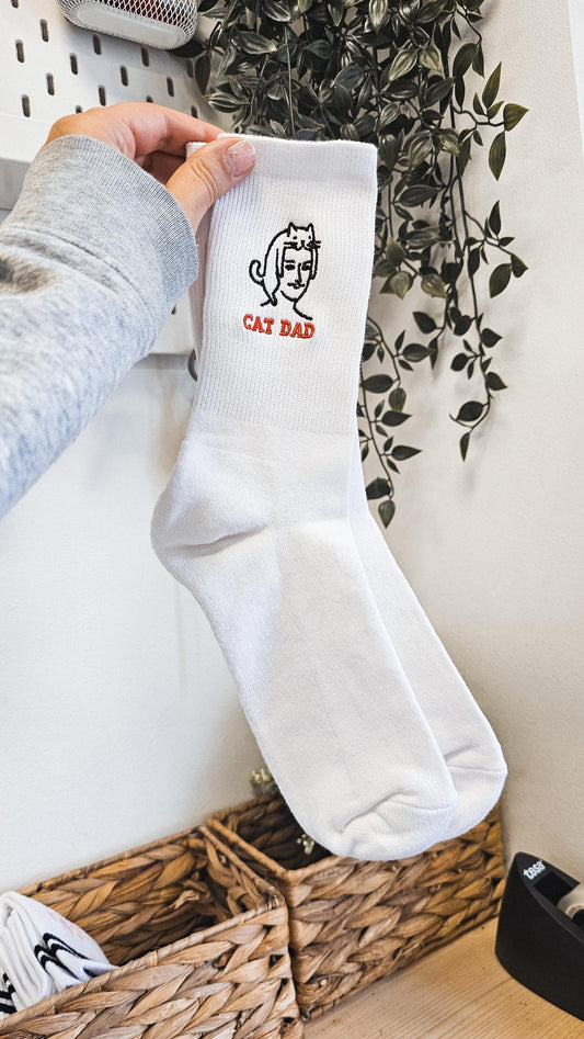Bespoke Embroidered Cat Dad Socks, Add Names, Logos or Designs