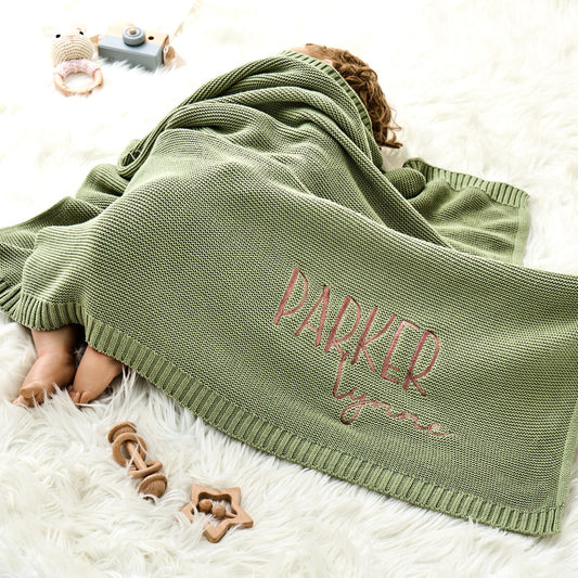 Baby Blanket,Custom Embroidered Name, Stroller Blanket, Newborn Baby Gift, Soft Breathable Cotton Knit blanket