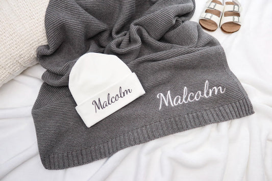 Custom Name Baby Blanket - Embroidered Newborn Gift Set, Unique Baby Shower Present