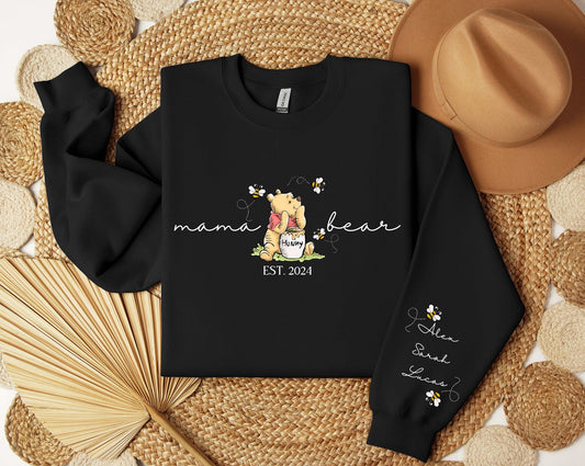 Custom Mama Bear Sweatshirt, Mama Est with Kid Name on Sleeve Sweatshirt, Personalized Mom Sweatshirt, Custom Mothers Day Gift, New Mom Tee