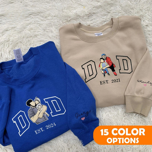Personalized Embroidered Dad Sweater With Photo | Father's Day or Birthday Gift for Dad | Personalized Father Son Hoodie | Portrait Shirt