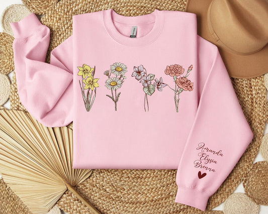 Handmade Birth Flower Sweatshirt – Unique Floral Gift for Moms & Grandmas