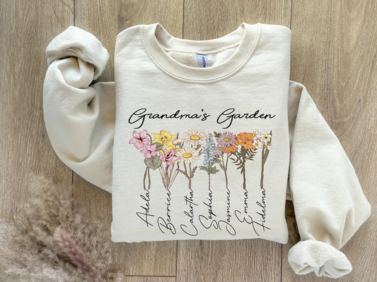 Grandma's Garden Sweatshirt – Custom Name & Birth Flower Design
