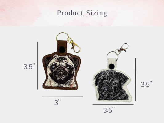 Realistic Pug Keychain: Embroidered Faux Leather Key Fob or Bag Charm, Great Gift for Dog Lover!