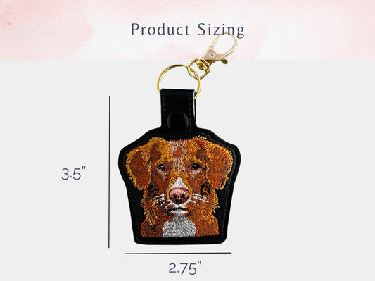 Realistic Nova Scotia Duck Tolling Retriever Keychain: Embroidered Faux Leather Key Fob or Bag Charm, Great Gift for Dog Lover!