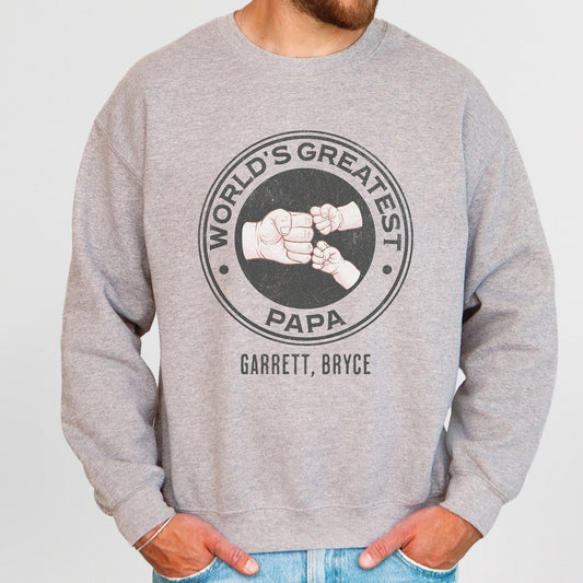 Custom Fist Bump Sweatshirt for Dad – Add Up to 6 Children's Names