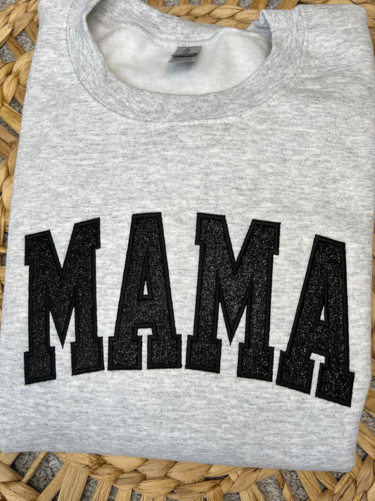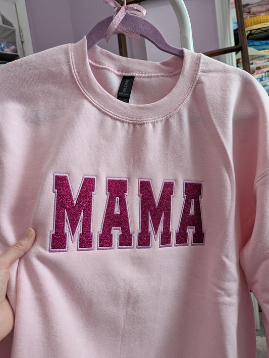 SW Sparkling MAMA Glitter Applique Embroidered Sweatshirt, Custom Glitter Crewneck, Pretty Glitter MAMA Embroidered Sweater, Valentines Gift