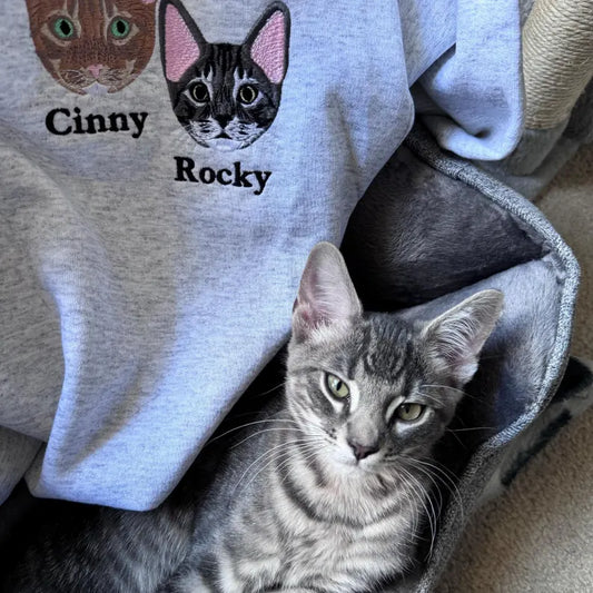 Custom Embroidered Sweatshirt from Your Photo, Personalized Cat Face with Cat Name Hoodie