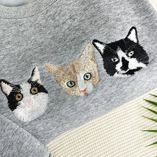 Personalized sweatshirt with embroidered portrait of your pet: gift for dog and cat lovers