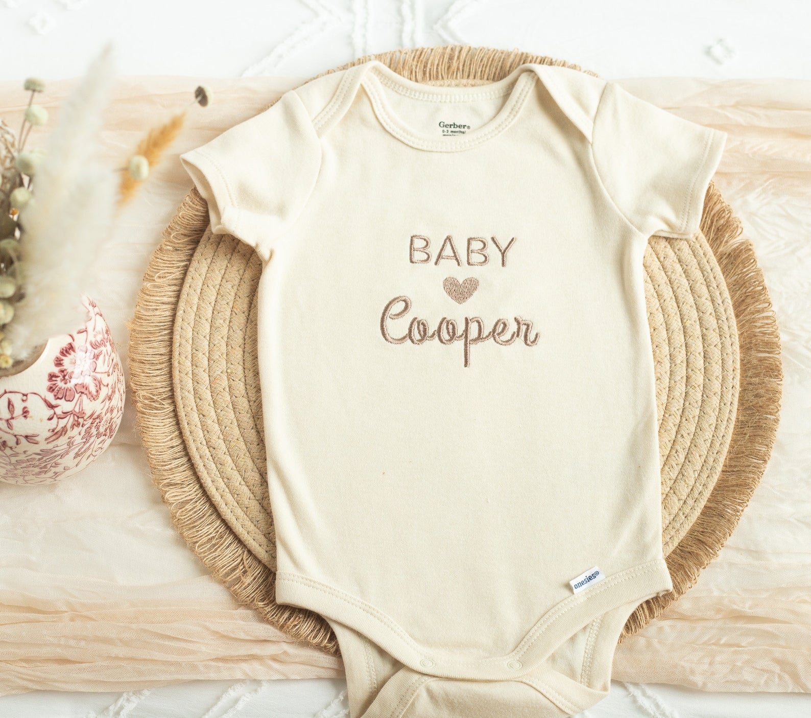 Custom Embroidered Baby Bodysuits, Custom Baby Name Handmade with Love