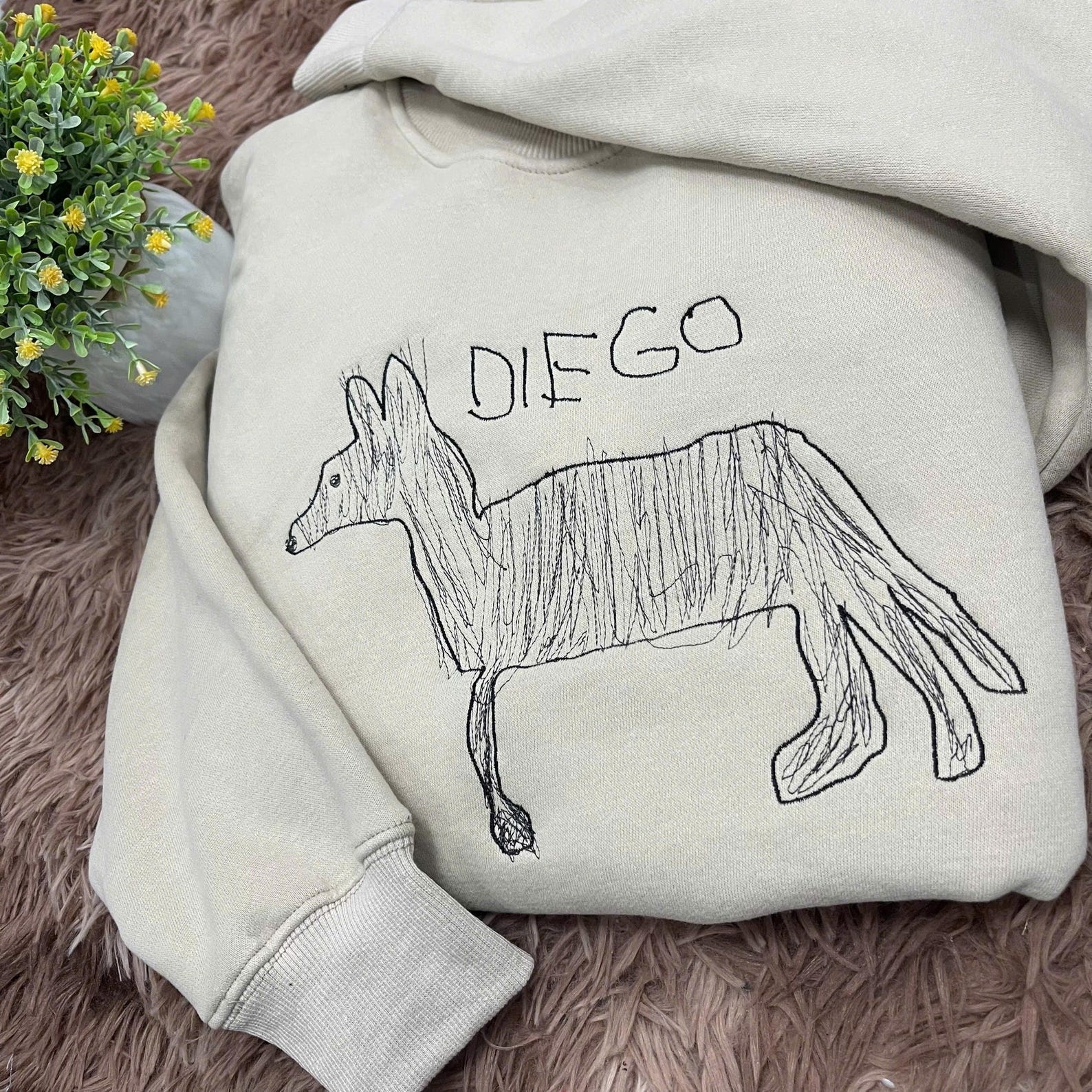 Custom Embroidered Family Portrait Sweatshirt - Personalized Kids' Drawing to Wearable Gift for Mom, Dad, Grandma - Outline Crewneck Hoodie BEST SELLER