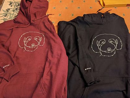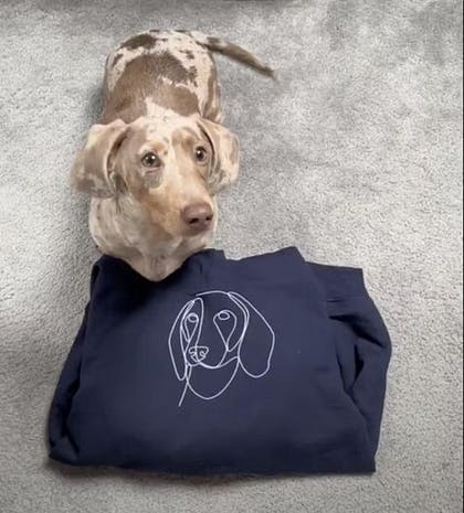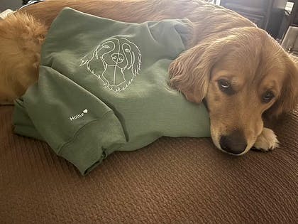 What a great gift! I ordered this sweatshirt for my wife and when she opened it, she knew it was our pup Betti. The embroidery is perfect and the sweatshirt is soft. We love it!
