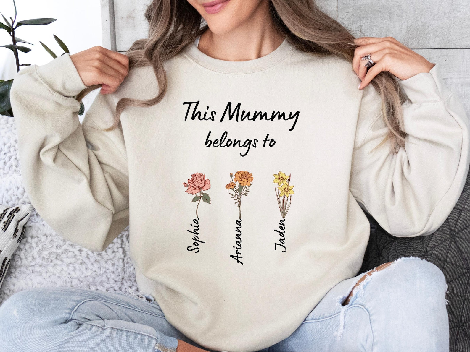 Custom Mom Sweatshirt – Birth Flower Names of Kids Printed BEST SELLER