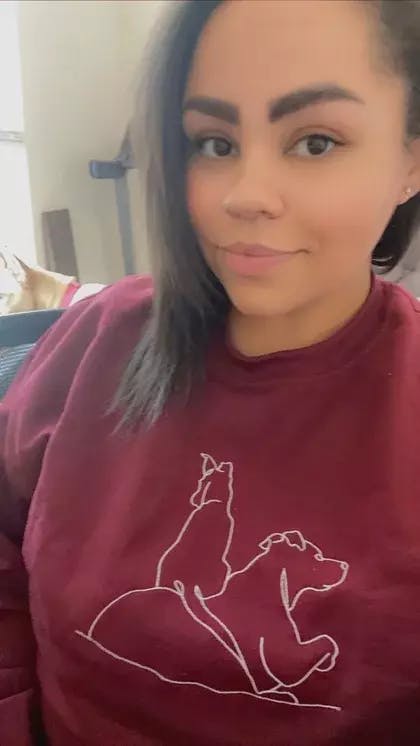 I never realized what a Wonderful present to myself this would be! When I opened the package containing my hoodie with my puppy Biscuit’s face staring back at me, all I could do was stand there holding it Grinning like a fool They did an Amazing job capturing Biscuit’s face and personality from the picture I submitted. Now I get to walk around with my Pride-N-Joy on my hoodie as well as by my side! The Quality and Workmanship are Excellent, do yourself a favor and get one or give it as a gift, you’ll (they’ll) be Thrilled you did.