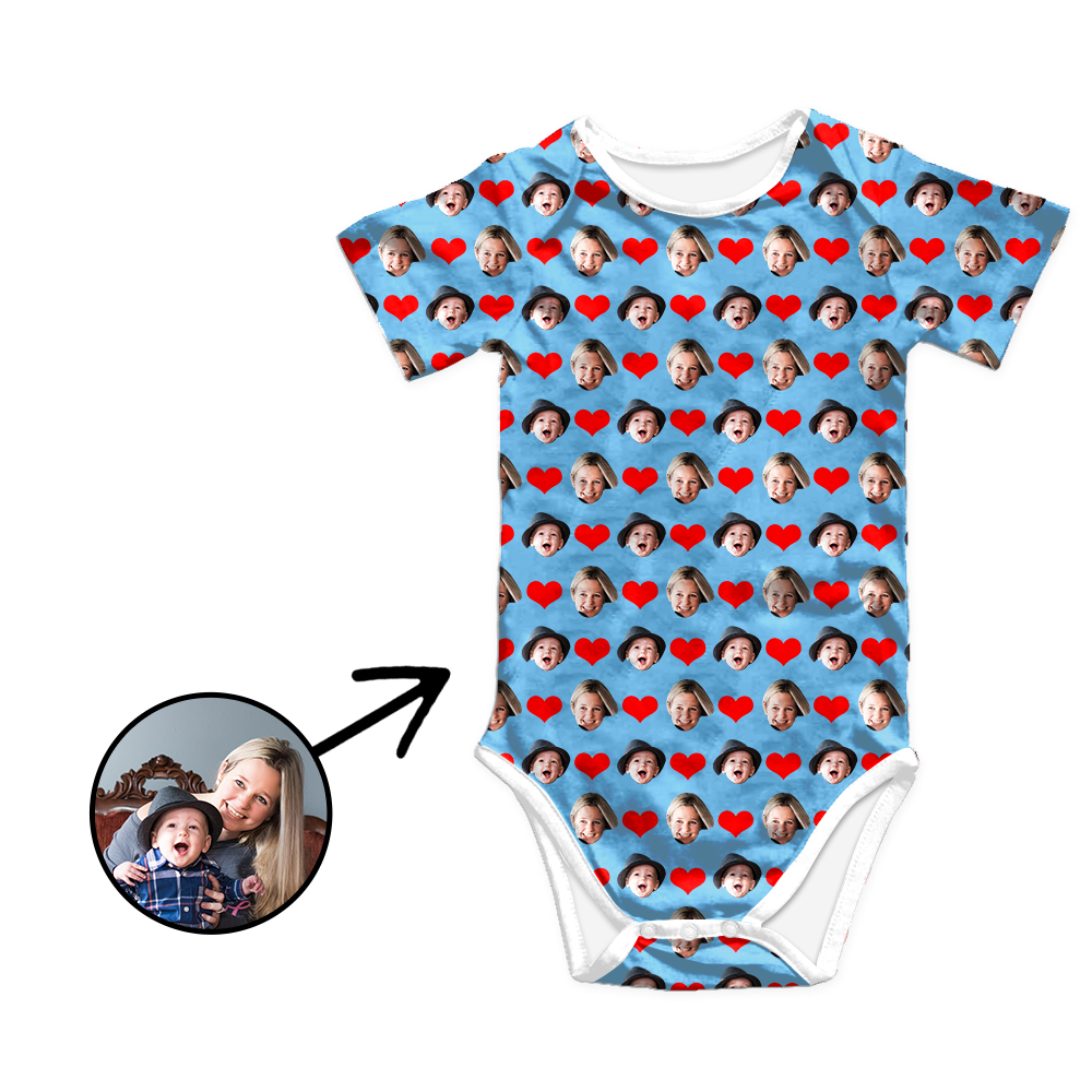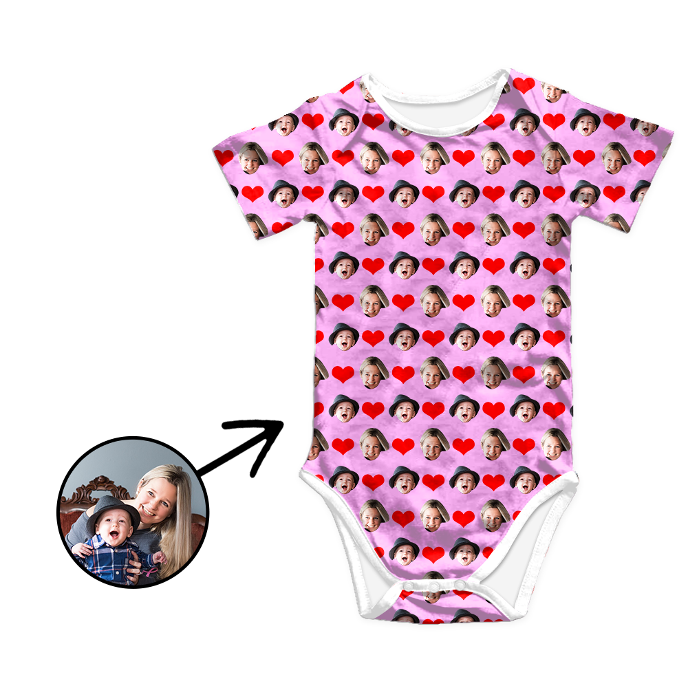 Custom Photo Baby Bodysuit Heart My Loved One's Face BEST SELLER