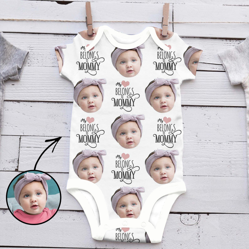 Custom Photo Baby Bodysuit My Heart Belongs To Mommy Mother's Day Gifts BEST SELLER
