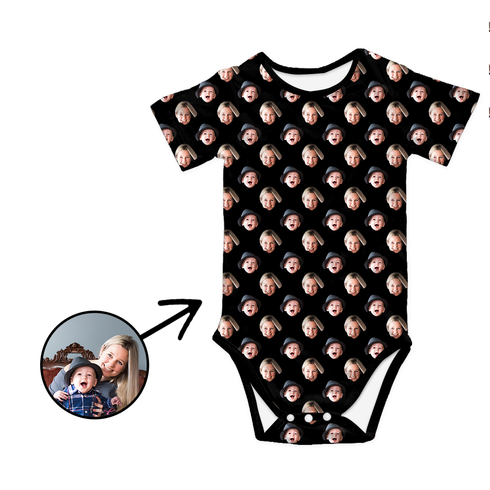 Upload a custom and then we will crop for you to print on your baby bodysuit, it's the unique to wear on your baby. You can print your faces or anything you like on it!