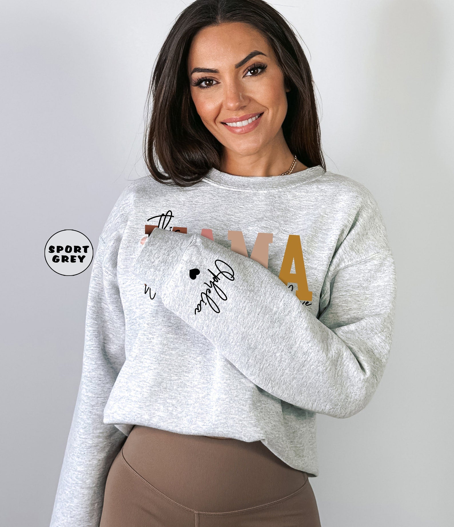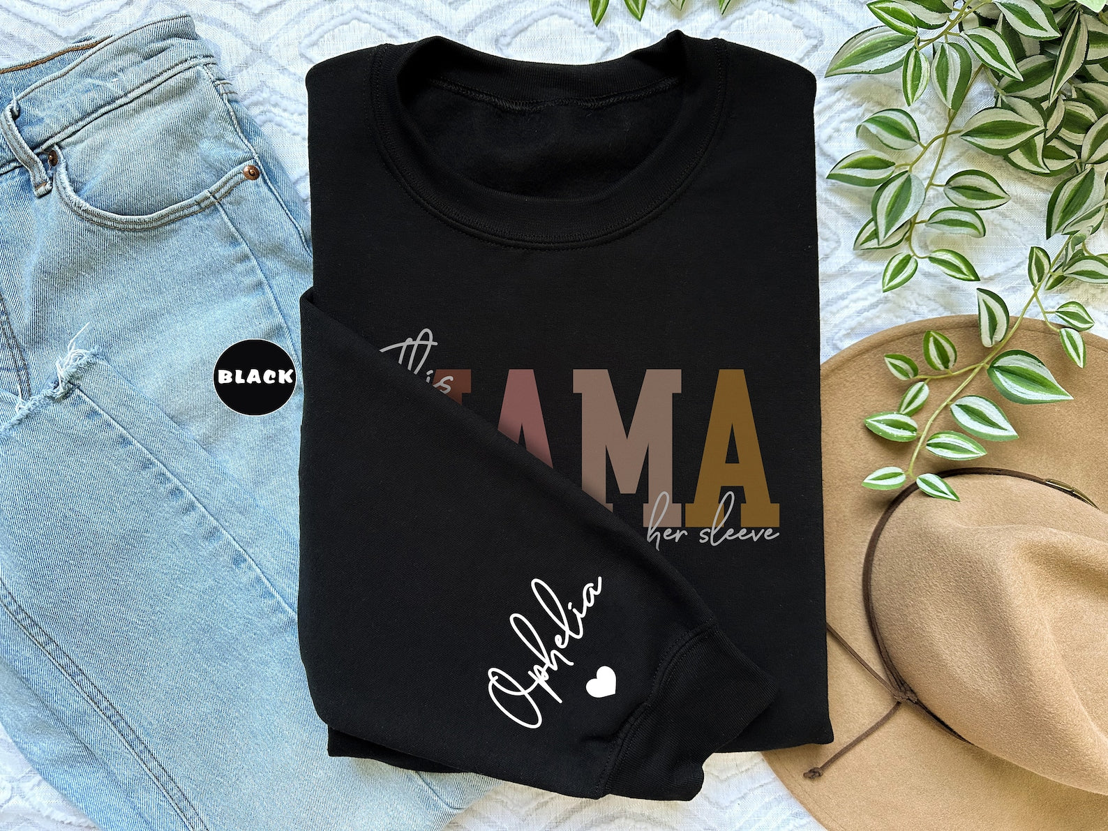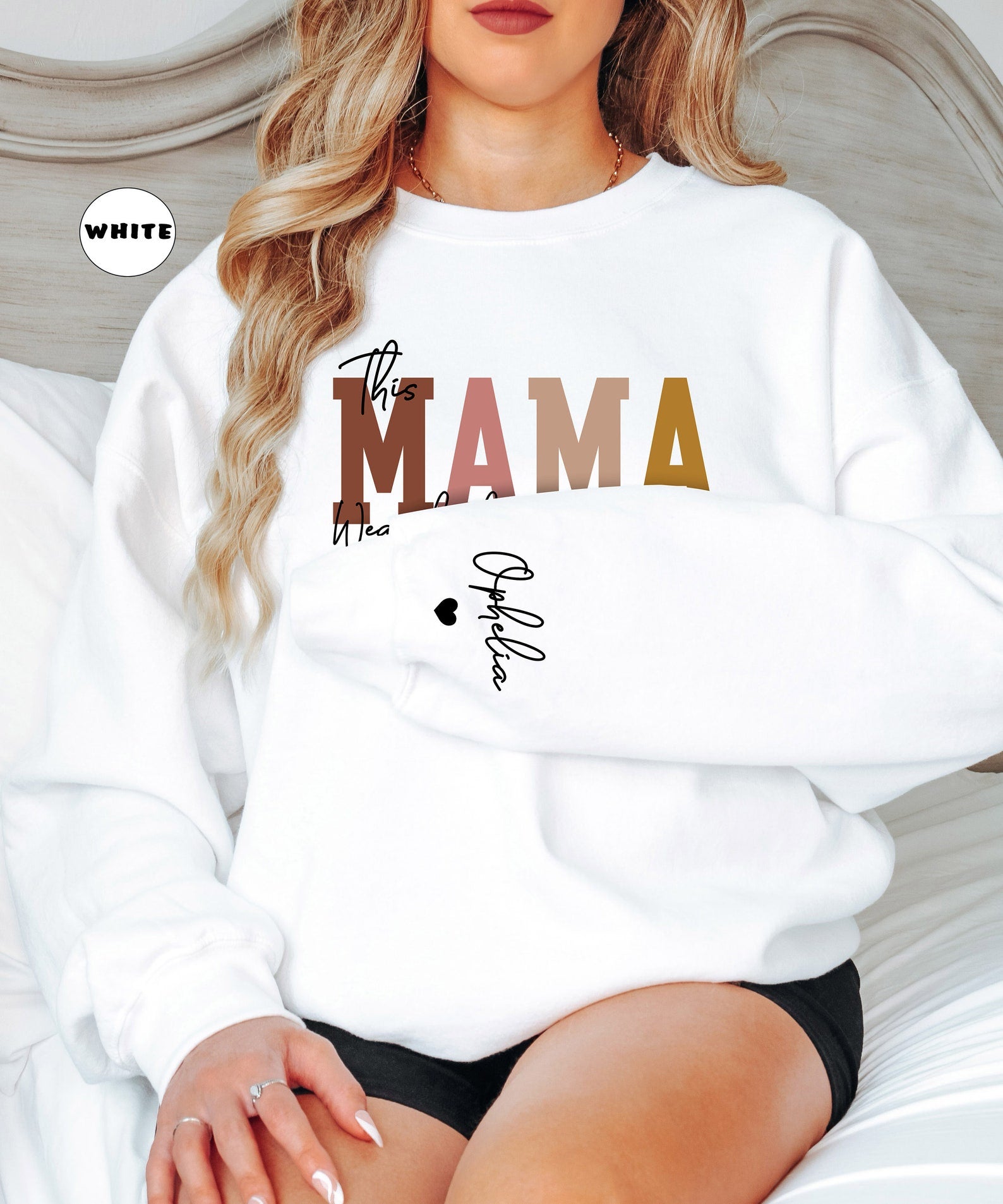 Custom This Mama Wears Her Heart On Her Sleeve Hoodie, Personalized Mom Sweatshirt With Kids Names, Cute Momma Outfit, Mothers Day Gifts BEST SELLER