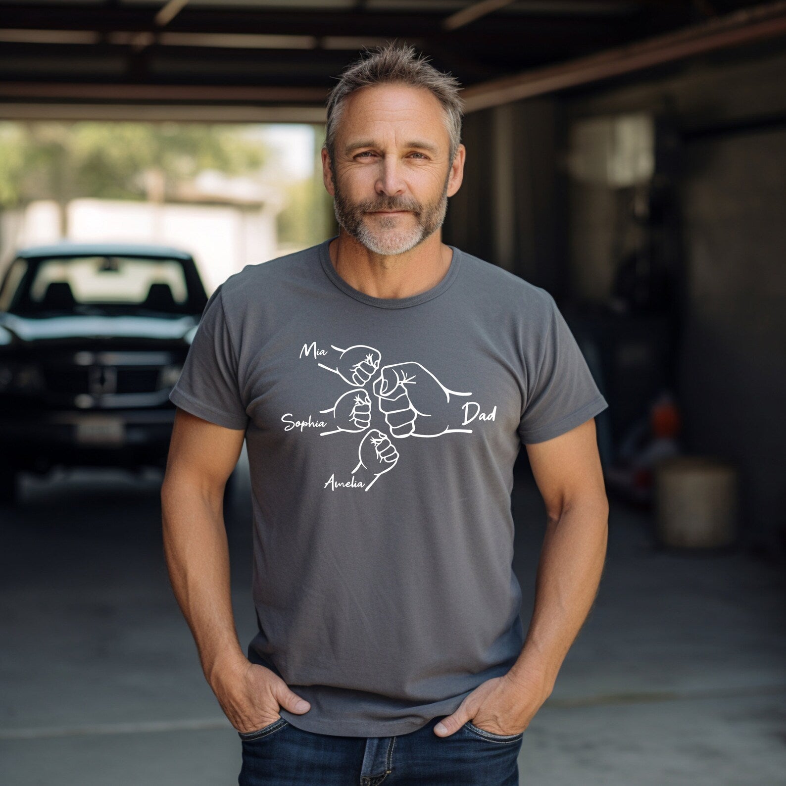 Celebrate the everyday hero in your life with our Personalized Fist Bump Dad Sweatshirt – a meaningful gift that captures the strong, unshakable bond between a father and his children.