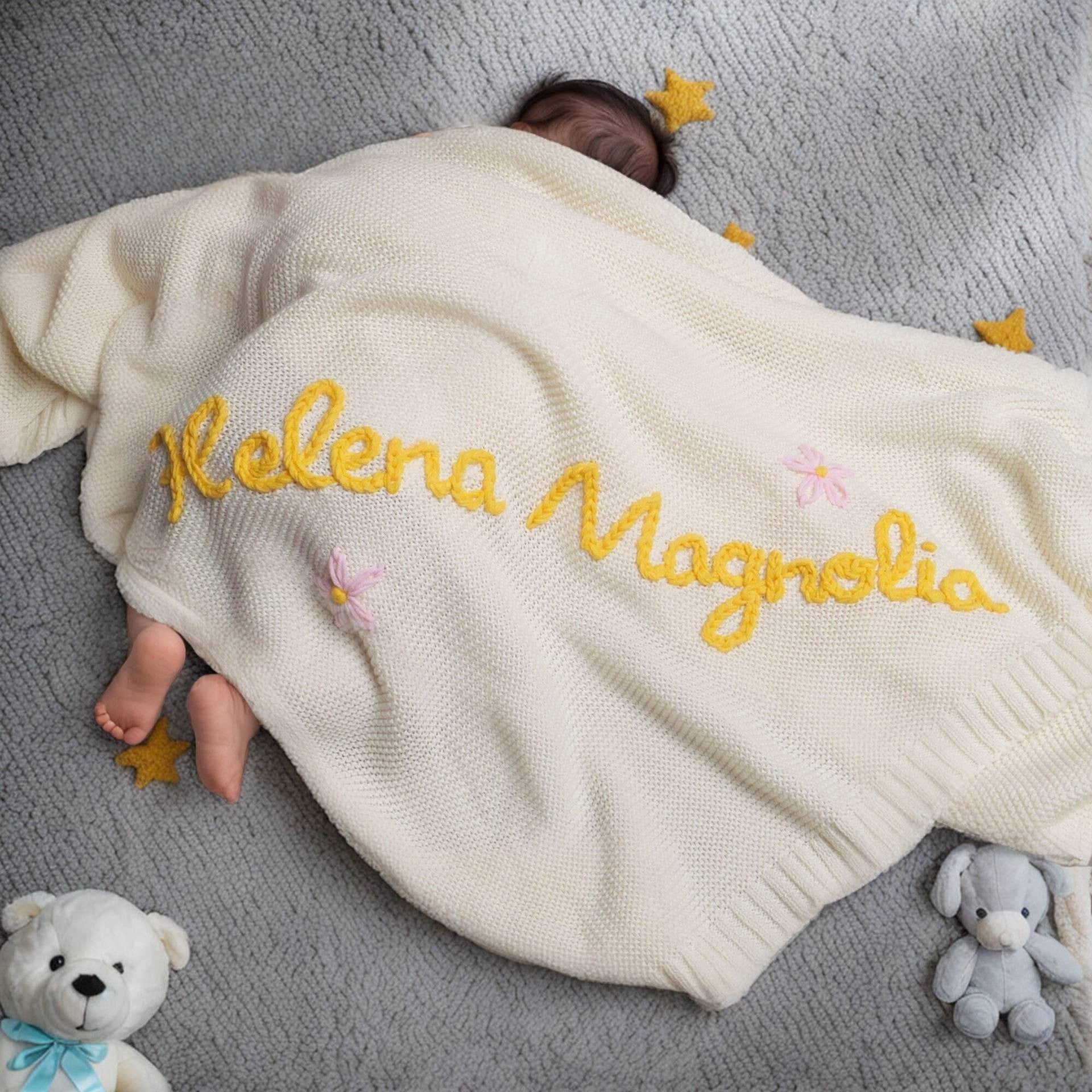 This adorable Embroidered Baby Blanket is made from ultra-soft cotton knit fabric, ensuring gentle comfort for your little one. Perfect as a custom baby name blanket, it can be personalized with a name, date, or sweet message, making it a unique and sentimental keepsake.