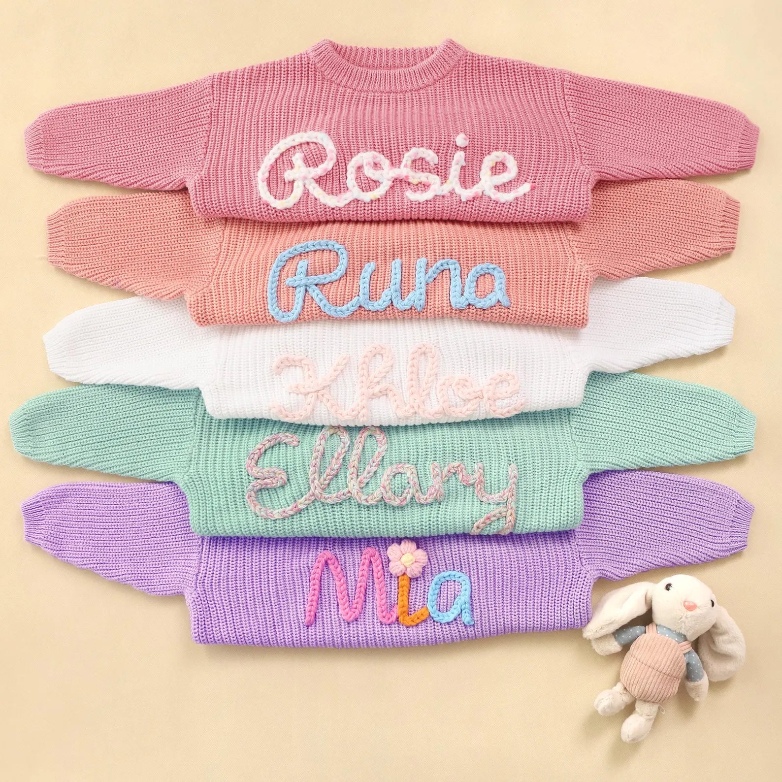 Celebrate your baby's uniqueness with our charming, custom-knit sweater lovingly embroidered with your baby's name – a one-of-a-kind keepsake. Made from ultra-soft, breathable material, this cozy sweater is gentle on delicate skin and provides warmth and comfort during playtime, photo shoots, or special occasions like birthdays, christenings, and holidays.